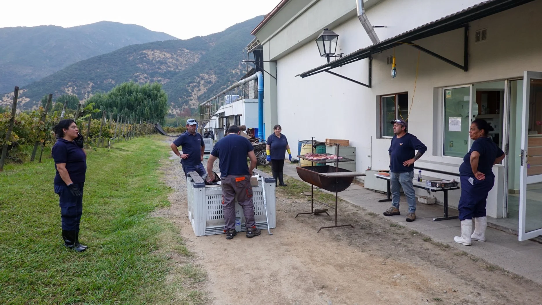 The Asado isn’t a sit-down meal. It’s essentially finger food-offered casually and eaten standing, between sips of Pisco. There’s no call to eat and sit when the food is ready. Instead, it lands in your hand quietly: a cube of pork passed to you on the end of a knife, a slice of beef laid into your palm mid-conversation. There are no plates, and the only cutlery is used to spoon Pebré onto a Choripán. There’s pleasure in the pace, and the meat is eaten in generous intervals. The goal isn’t just to eat, but to stay. Meat is expensive, and in harvest, time is scarce, yet both are offered freely. It’s not indulgence, but commitment that reaffirms community and generosity. Interestingly, when we weren’t sleeping or working, I kid you not, we were having an Asado, and that is exactly why I will remember them so vividly and fondly. Asados are not a rarity in Angostura, and that is what makes them so special.